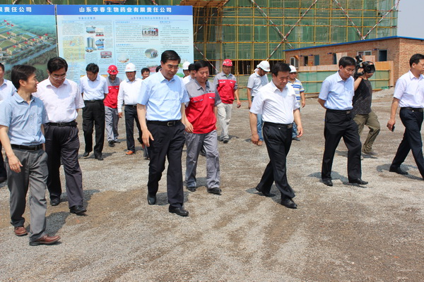 6月12日上午10时,潍坊市市委副书记、市长刘曙光,潍坊市副市长、滨海开发区党工委书记王树华市长等领导到山东华春药业调研重点项目建设情况。