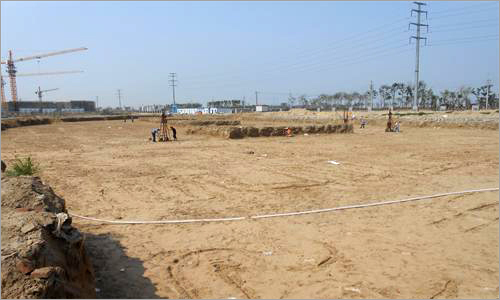 厂前区基因研发中心一段地基钎探、放线