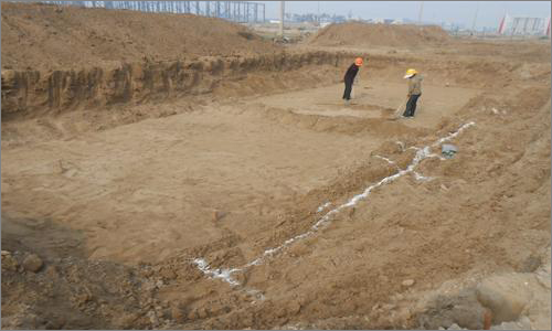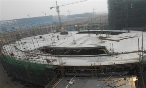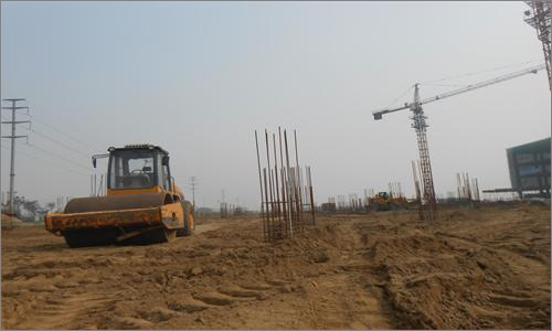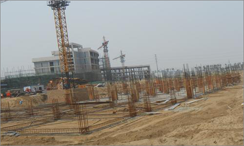 生物制药工程研发中心1-5轴基础梁模板安装、6-20轴基础梁钢筋安装
