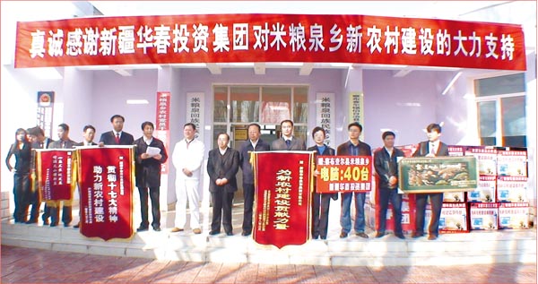 华春工会与华春企业家一道,在积极参与新疆少数民族地区的新农村建设、支持第八届全国民运会新疆代表团为弘扬新疆的民族体育文化作贡献。